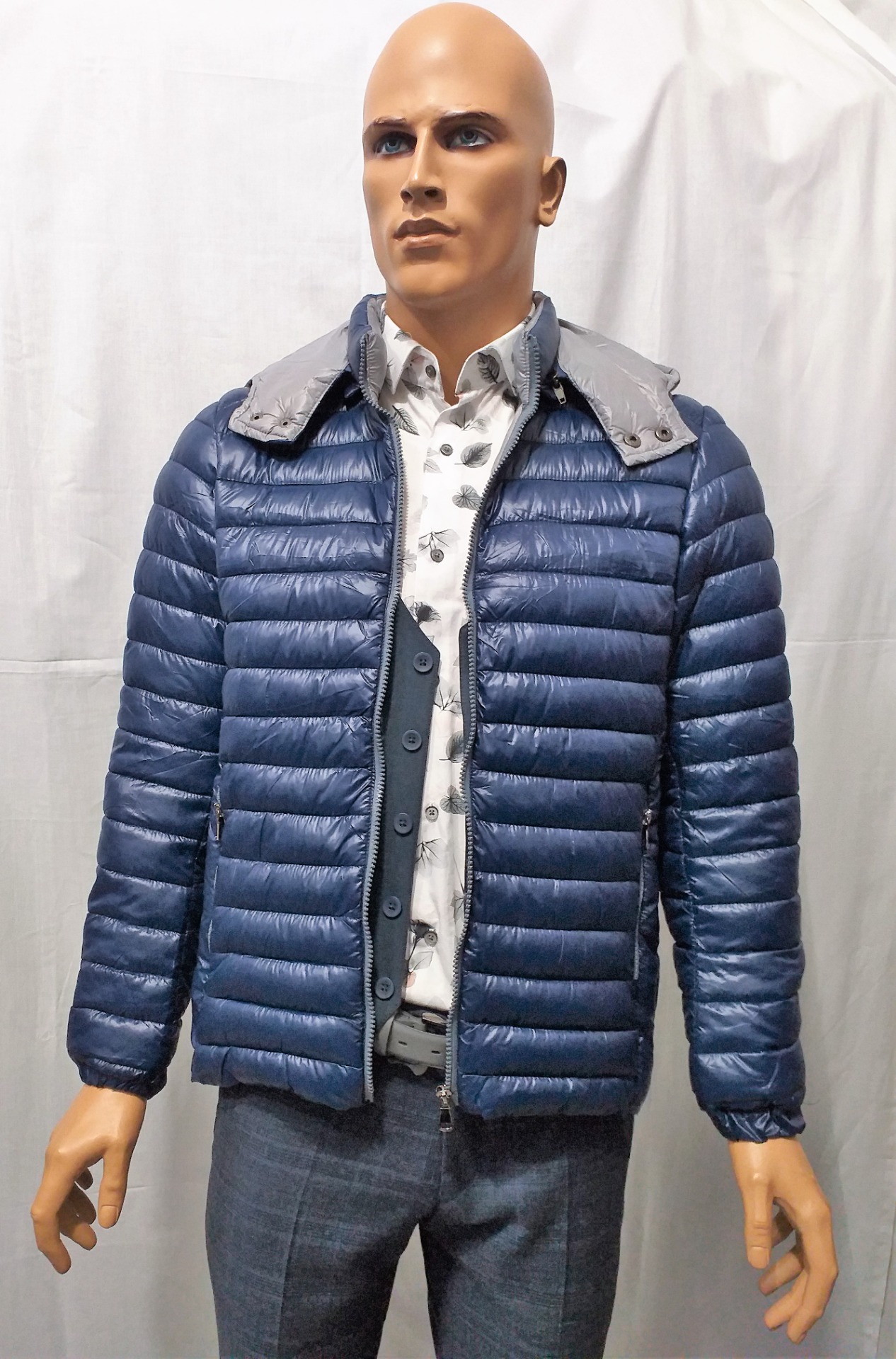 • Pánska prechodná bunda tmavomodrá. Moderný strih, ozdobné prešívanie, zapínanie na zips. Odopínateľná kapucňa., Výborná kvalita materiálu aj šitia, super cena, Vyrobené v EÚ.