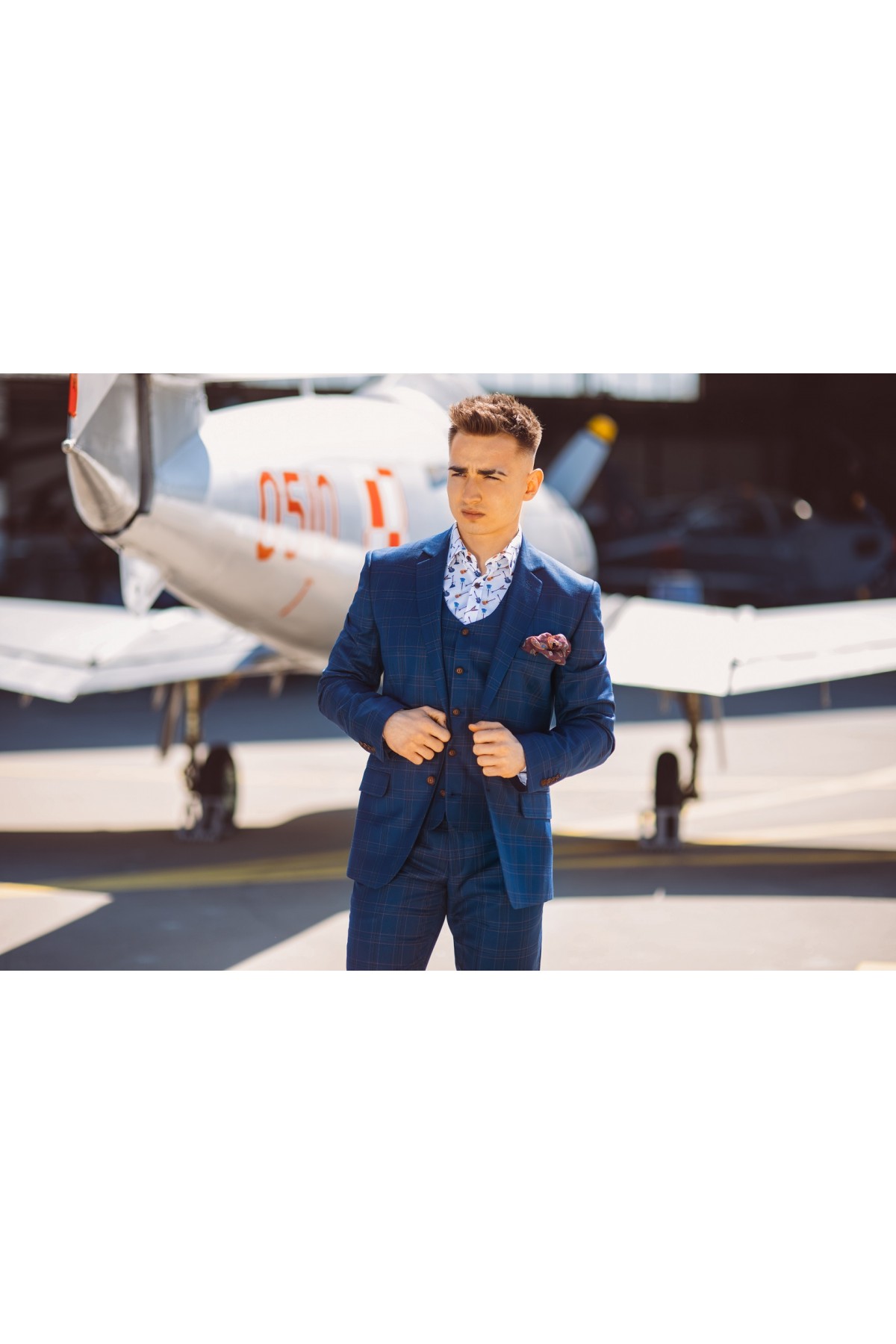 Pánsky oblek značky VILLARO v tmavomodrej farbe s károvanou potlačou. Určené pre mužov, ktorí oceňujú štýl a eleganciu. Jednoradový dvojdielny oblek v jedinečnom strihu Slim Fit, ktorý zaručuje výnimočný komfort nosenia a dokonalé prispôsobenie mužskej postave. Vyrobené z vysoko kvalitnej vlnenej tkaniny s prídavkom polyesteru.