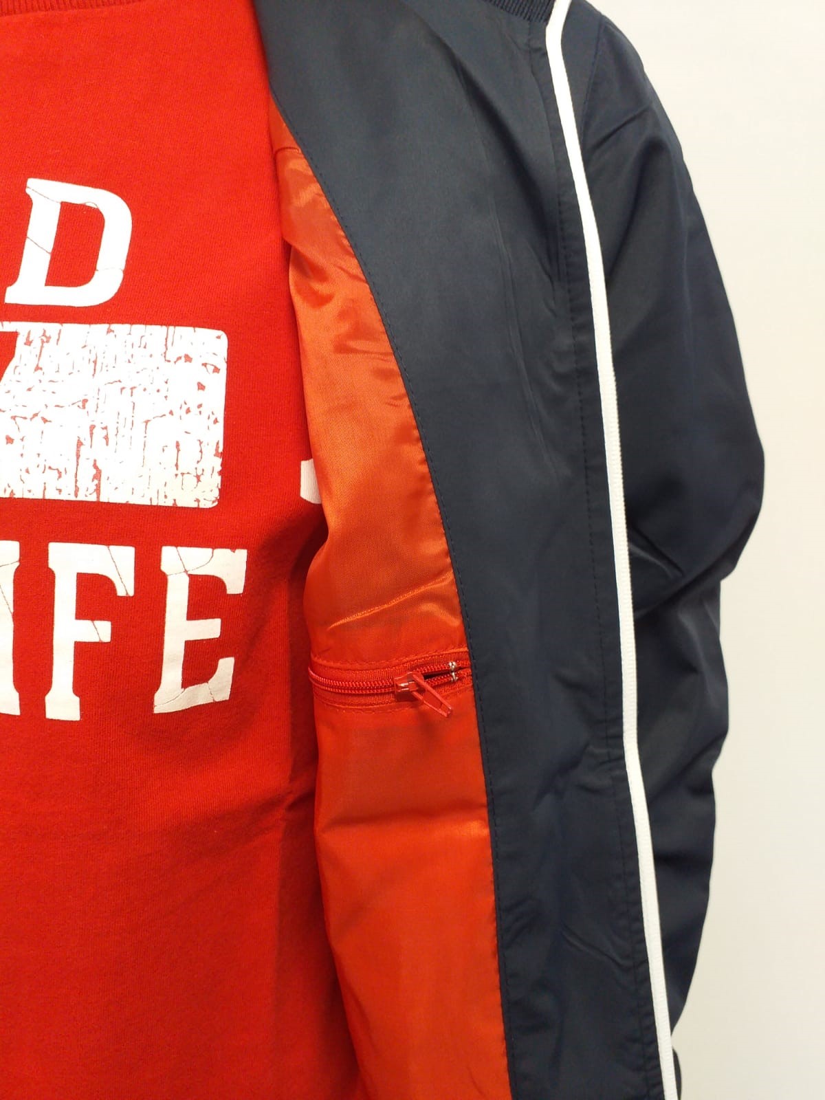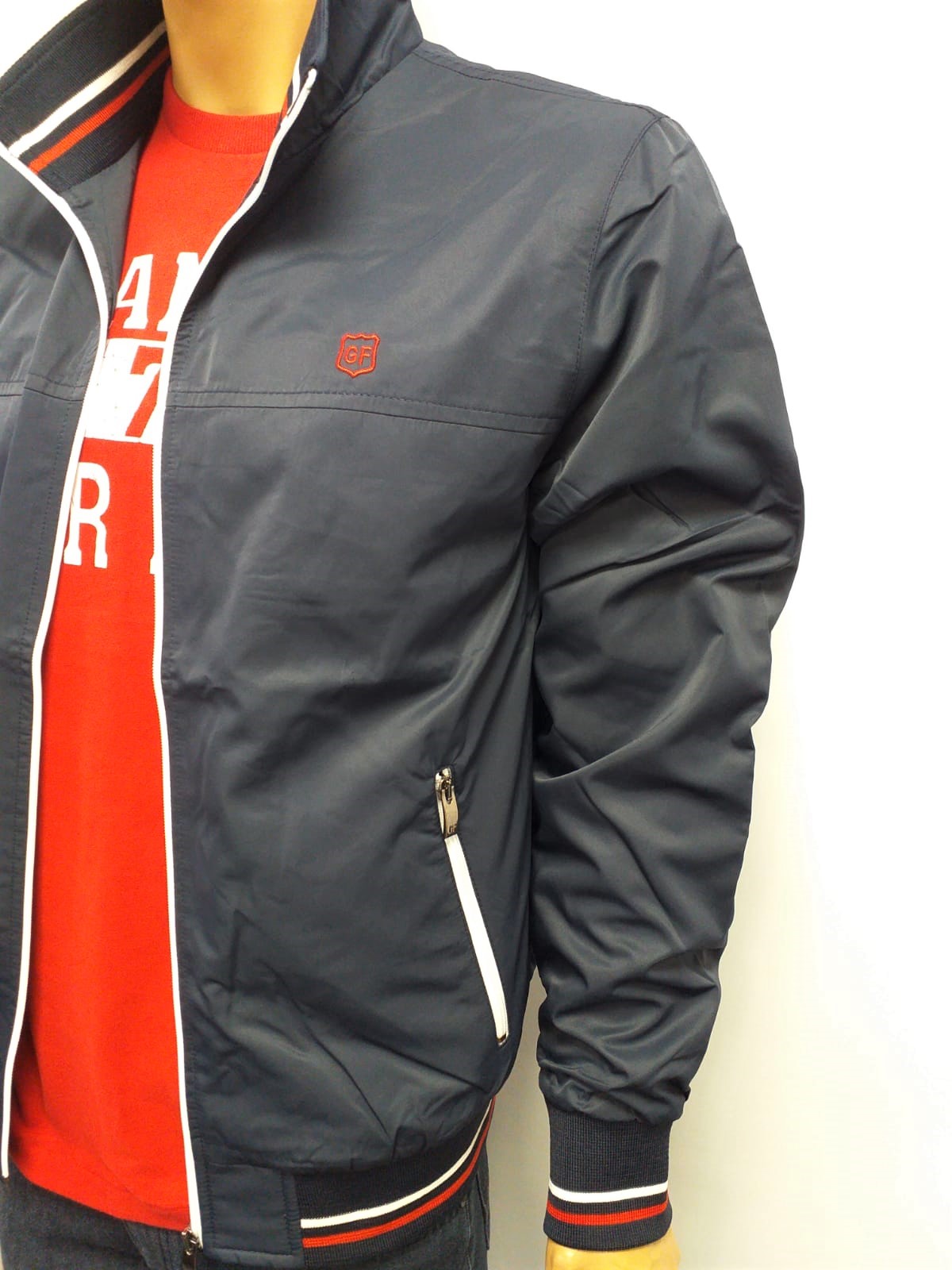 Pánska bunda tenký materiál. Športový strih, rukávy aj spodný kraj zakončený kvalitným úpletom, vnútorné vrecko, podšívka 100%PES, vrchný materiál 100% PES. Zapínanie na zips. Módne farebné kombinácie, kvalitné vypracovanie. Vyrobené v EÚ.